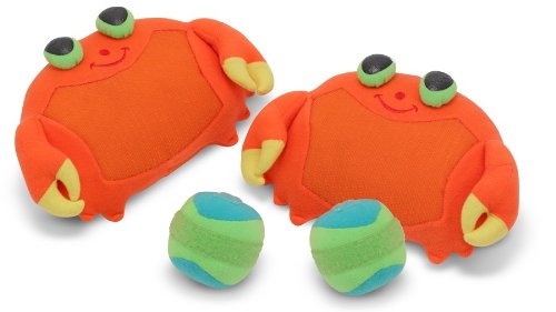 Melissa & Doug Sunny Patch Clicker Crab Toss & Grip Melissa & Doug 6425 Catch some fun at the beach with the Melissa and Doug Sunny Patch Clicker Crab Toss and Grip! This fun tossing and catching game includes 2 soft, self-stick mitts, and 2 balls. Two players simply stand a distance apart, toss the self-stick ball, and try to catch it on their self-stick, Clicker the Crab mitt. The Toss and Grip game provides a great way to develop hand-eye coordination! Its perfect for beach, playground, or backyard use!